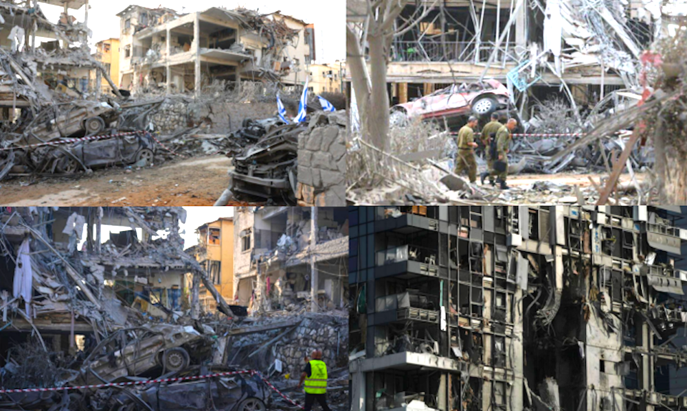 This combination of four photos shows buildings destroyed by Iran’s missiles in Tel Aviv.